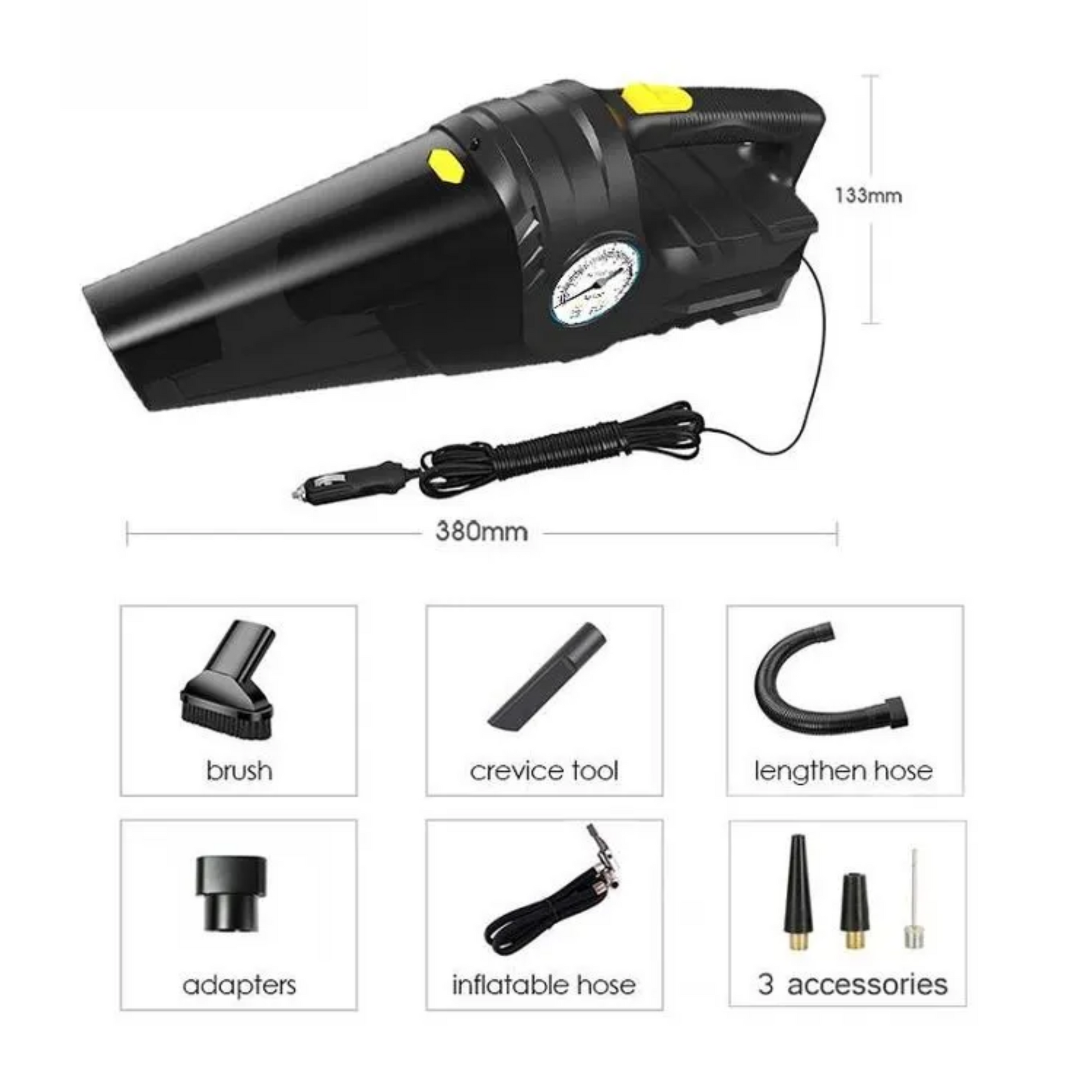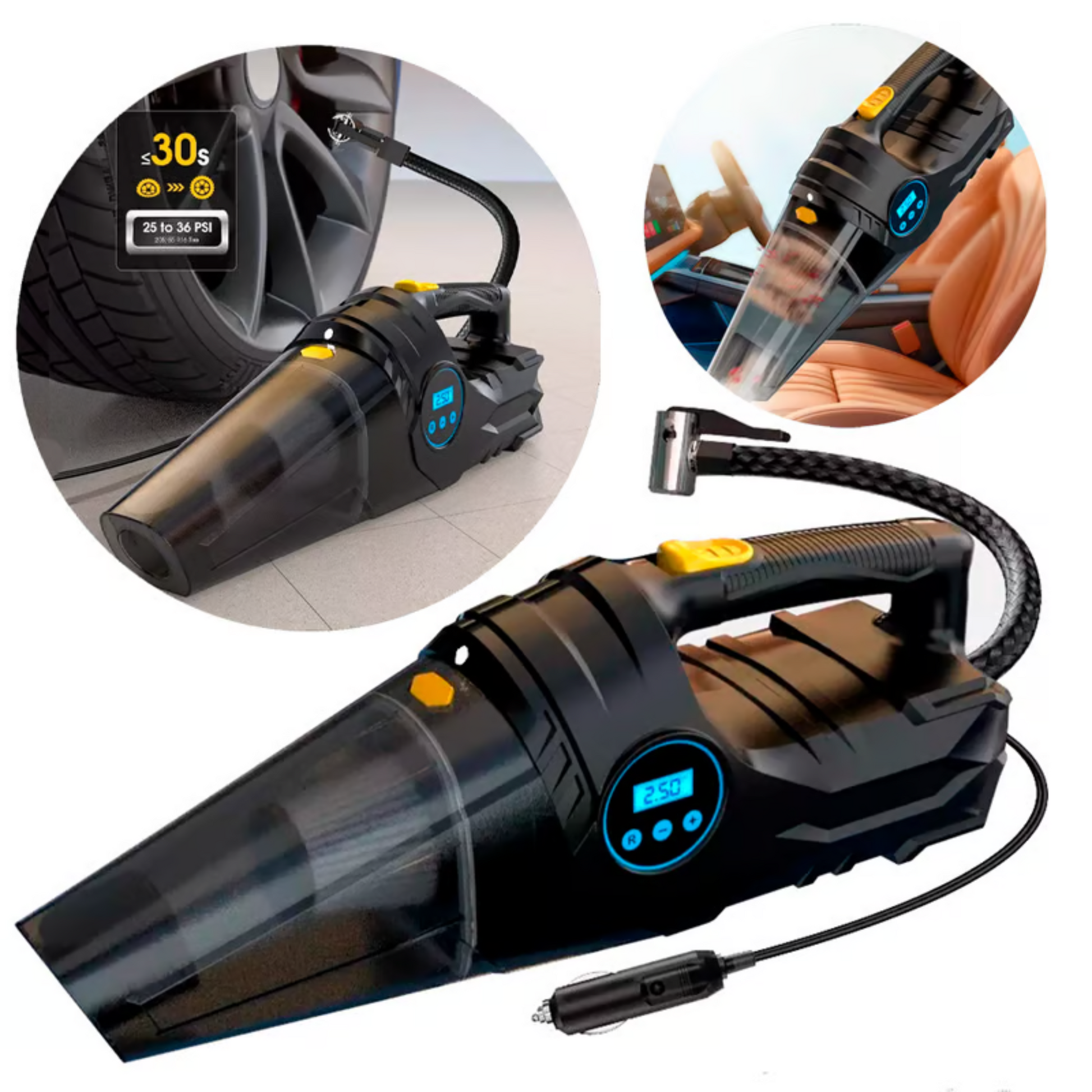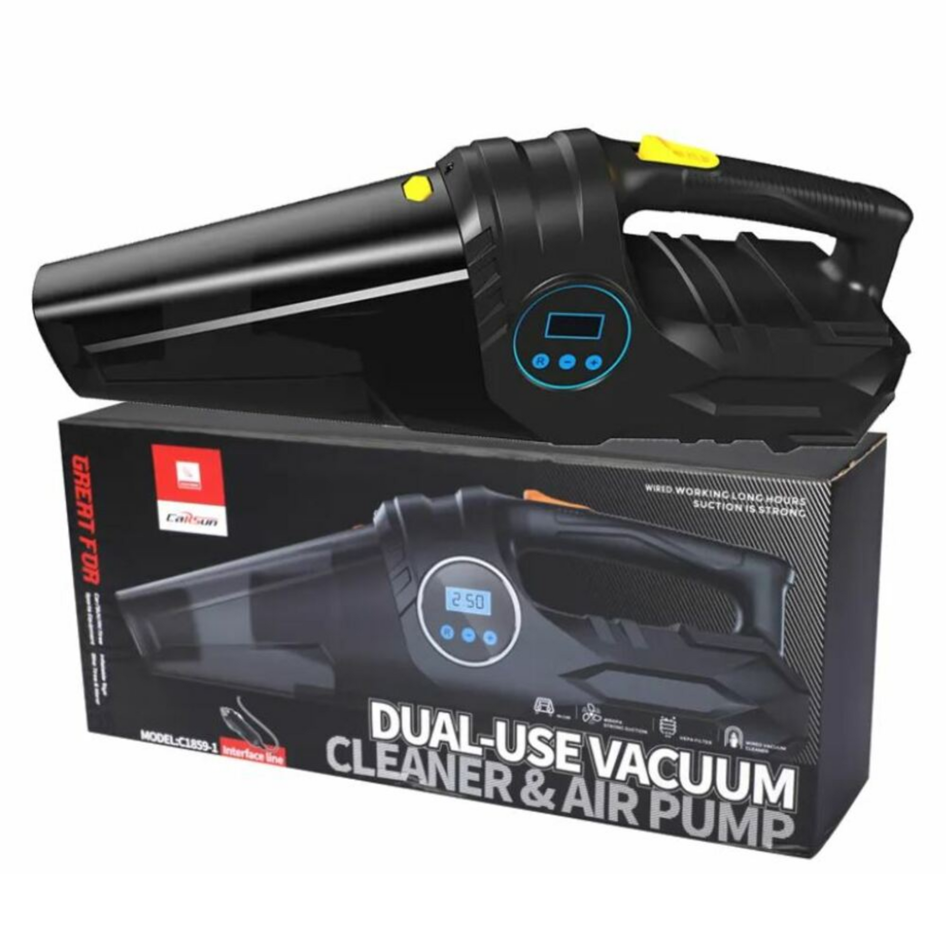 La aspiradora y bomba de aire CARSUN 12V es una solución integral para el mantenimiento de tu vehículo. Diseñada para ofrecer funciones de aspirado y de inflado en un solo equipo, te permite mantener tu auto limpio y tus neumáticos en la presión adecuada, con facilidad y en cualquier momento.