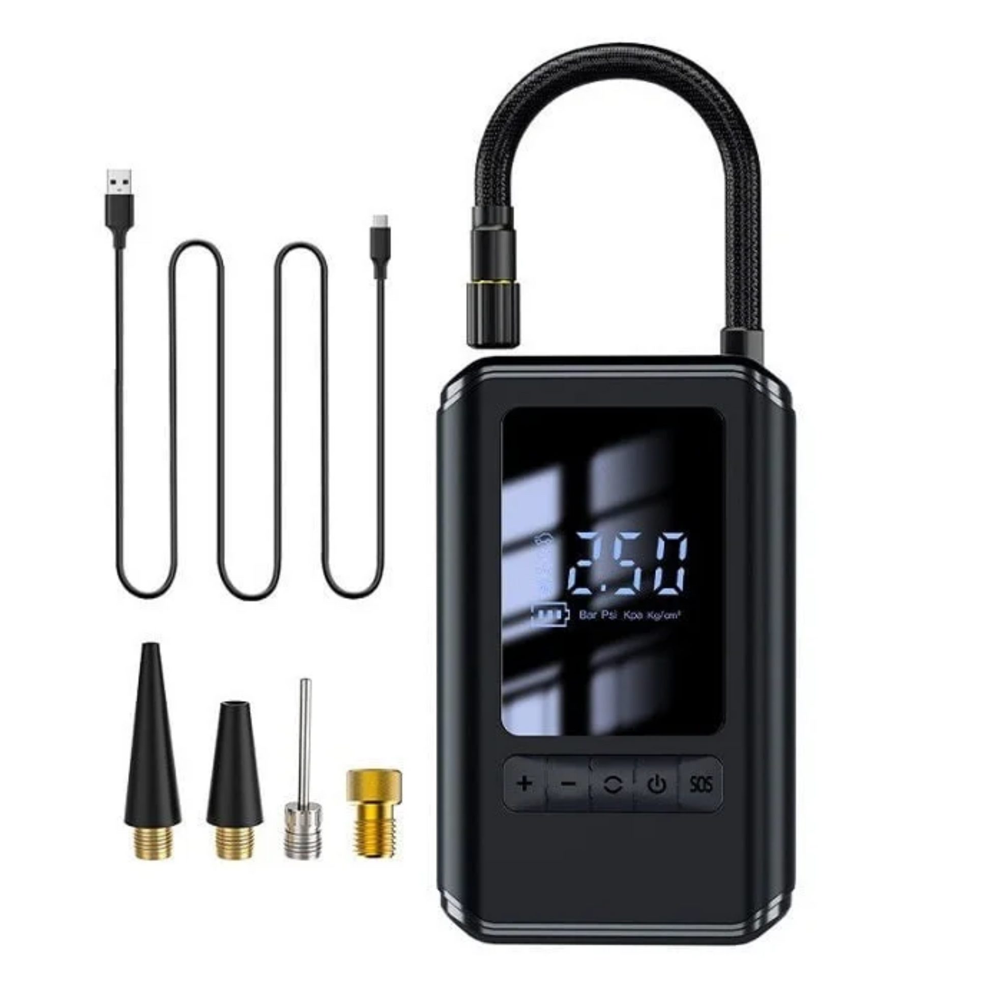 Garantiza la seguridad en carretera manteniendo tus neumáticos con la presión adecuada gracias a esta bomba de aire portátil recargable. Su diseño compacto y liviano permite un fácil almacenamiento en el vehículo, ofreciendo tranquilidad en cada viaje al reducir el riesgo de pinchazos y reventones.