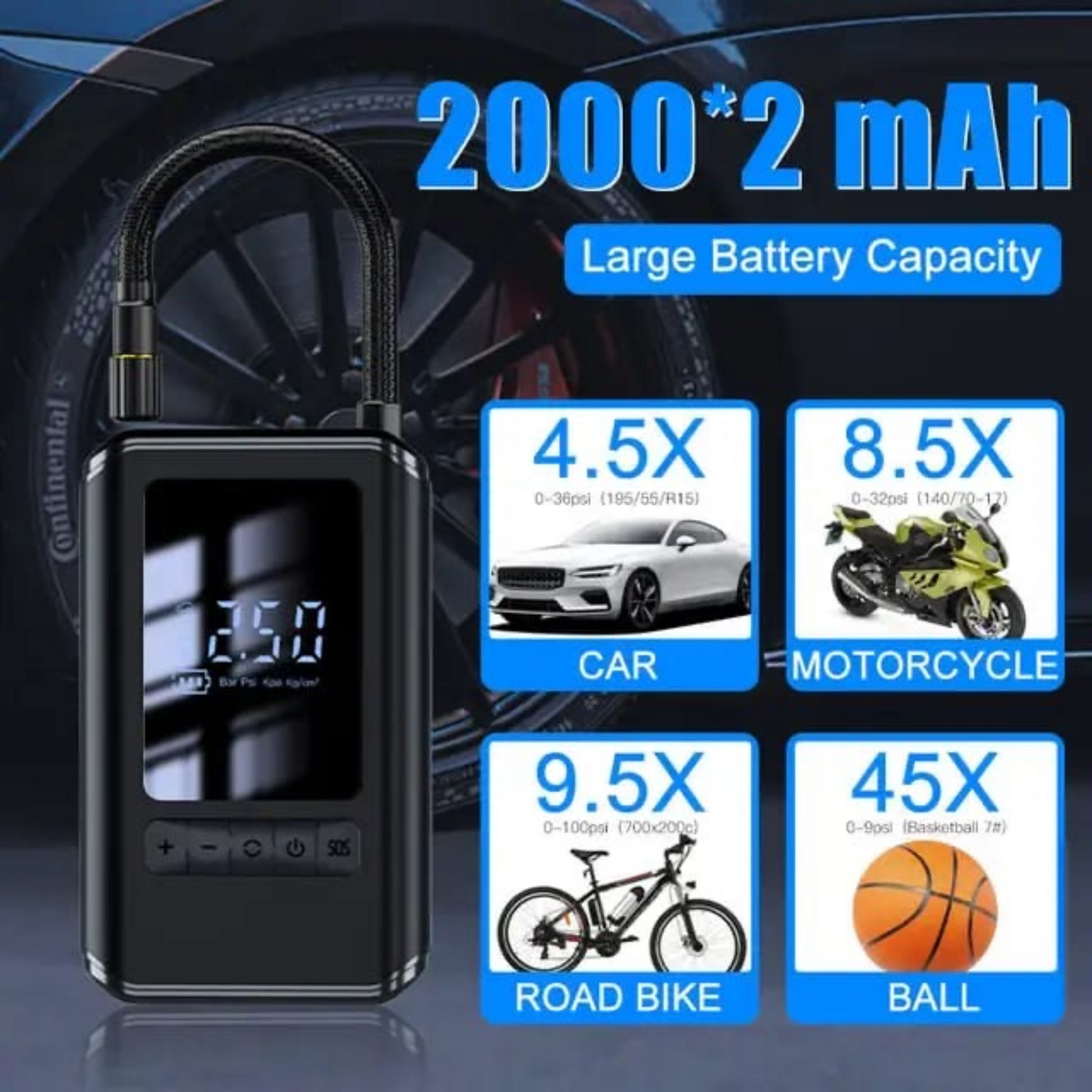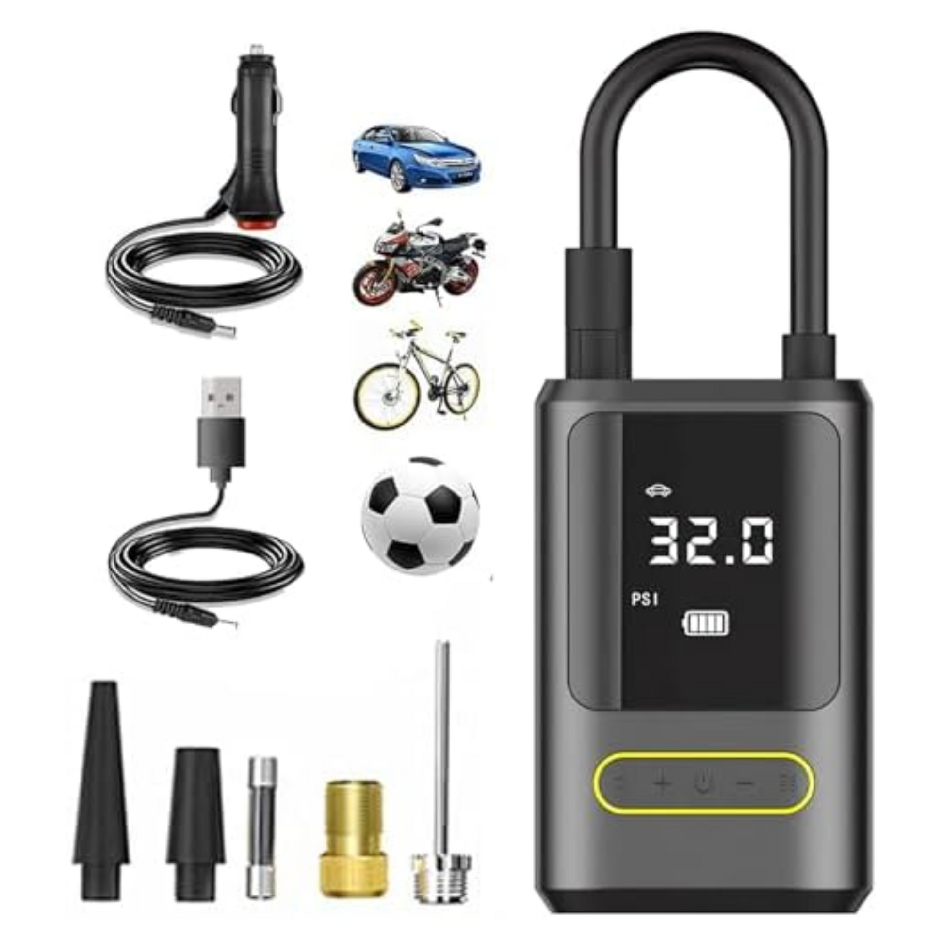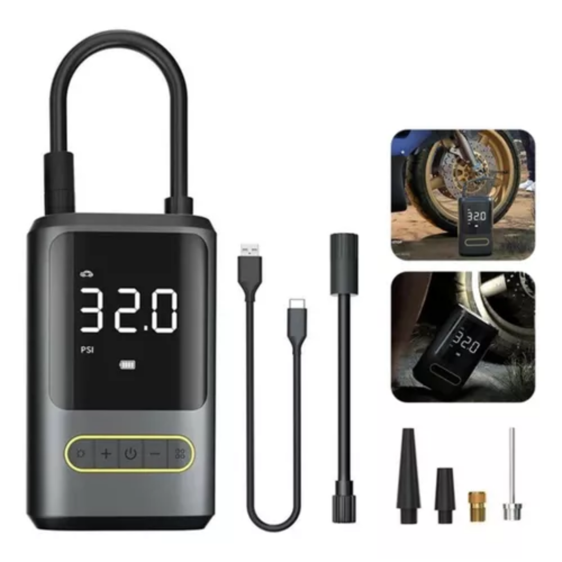 ✔️ Accesorios útiles: Incluye adaptadores y boquillas para diversos tipos de neumáticos.
